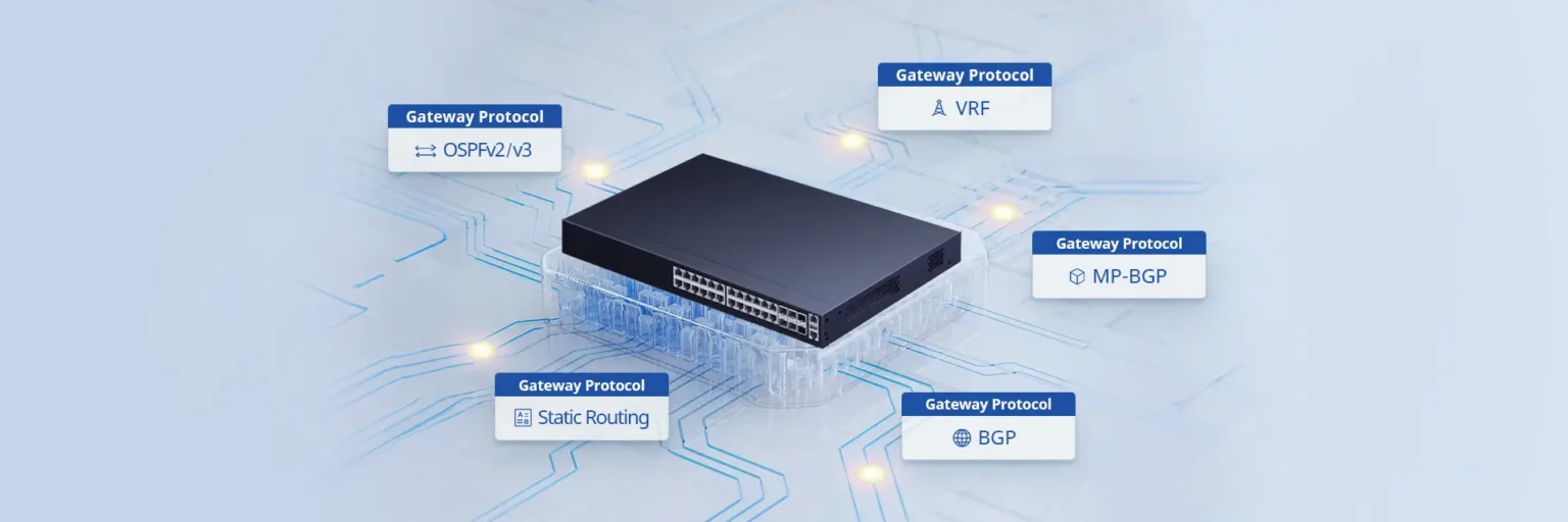 Equipped with powerful routing capabilities, including static routing, VRF, OSPFv2/v3, BGP, and MP-BGP, this model ensures flexible network segmentation and dynamic route management for demanding enterprise and campus environments.